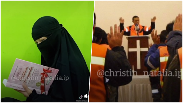 Dalam video berikutnya, Christin menunjukkan fotonya mengenakan gamis, hijab dan cadar hitam disandingkan dengan ayahnya yang merupakan seorang pendeta.